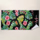 Toalha De Praia Hibiscus Tropical, Rosa, Monograma, Preto