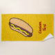 Ícone de cachorro quente. Imagem do contorno da comida de lixo ícones de fundo amarelo. Custom Text.
