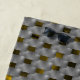 Amarelo ou ouro curva a imagem em retângulos cujas cores vão da cinza para a mais clara ou escura, dando uma percepção de alivio e profundidade dependendo da posição a olhar ou da percepção pessoal. As formas retangulares são como se fossem peças incorporadas. Os retângulos do impressão dão certa aparência de que são placas de cinza coladas