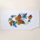 Symbol infinity made of gold, decorated with realistic orange and blue on a white background. Butterfly morpho and Monarch. Design with butterflies.