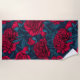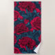 Toalha De Praia Jardim de peônia vermelha em azul escuro