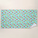 Uma toalha de praia com padrão de fruta tropical adorável apresenta um padrão alover de abacaxi sorridente e melancias em um fundo de turquesa de verão. Um design bonito e esquisito para quem ama o estilo kawaii.