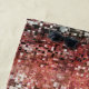 Imagem de pequenos quadrados pixels que lembram uma parede de ladrilhos ou cerâmica vermelha, porém, com muitas manchas e pequenos respingos que parecem manchas e borões de tinta.