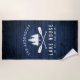 Uma bela toalha de praia com tema rústico, com seu nome familiar e "Lake House" ou outro texto desejado junto com sua data e localização estabelecidas. Esta design, personalizada e única, apresenta uma silhueta branca de remos de barco cruzados e pinheiros em um impressão de tábuas de madeira em cores azuis ricas. Para ver mais designs como esta, sinta-se à vontade para visitar a minha loja aqui em "Zazzle.com/Rustic_Charm". Obrigados.