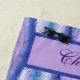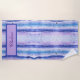 Brincadeira de praia artística tem listras de tintas azuis, lavandas, roxas e brancas de aquarela. As gotículas de tinta também são salpicadas.