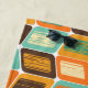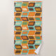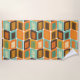 Esta toalha de praia tem uma design moderna do século médio de retângulos arredondados inclinados para o lado com retângulos inclinados dentro feitos de linhas todas em cores dos anos 70.