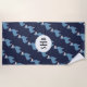 Adoráveis lhamas azuis de pelúcia padronizada com letras iniciais no centro. Relaxe na praia com uma toalha de praia com padrão de lhamas azul!