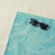 Pastel blue with gold accents, tropical palm leaves in a seamless pattern.