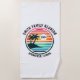 Deslumbrantes férias tropicais personalizadas ou toalha de praia de reagrupamento familiar. Possui uma cena de praia vibrante com palmeiras. Perfeito para ficar deitado na piscina ou deitado na praia. Seque com estilo e comemore suas maravilhosas férias de família, reunião ou evento. Nome, local e ano personalizável da viagem/família.