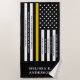 Prayer BeachTowel do expedidor numa linha de ouro fina moderna, American Flag, em cores de bandeira do expedidor. Esta toalha de praia do expedidor é uma prenda única e perfeita para todos os despachantes de polícia, bombeiros e 911 despachantes e presentes de despachantes. Personalize esta toalha de praia de oração do despachante com seu nome de despachante. COPYRIGHT © 2020 Judy Burrows, Black Dog Art - Todos Os Direitos Reservados. Oração do Dispatcher Personalizada Tela de Linha Dourada Magra Imprimir Toalha de Praia