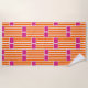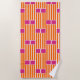 Esta toalha de praia tem uma design moderna do século médio de linhas verticais laranja com retângulos cor-de-rosa acima, repetidas sobre a design.