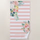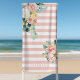 Toalha de Praia Listras Náuticas Aquarela Floral Nome Rosa. Personalize este design personalizado com o seu próprio nome.