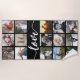 Display fifteen favorite photos or vacation memories on this uniquely printed beach towel, featuring a gridded layout and square photos on a crisp black background. Perfect for your Instagram snaps, towel features 15 photo templates with "love" in the center in modern script lettering.