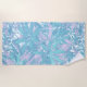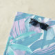 Manhãs legal e frescas entre as palmeiras das ilhas trazem aquas moles e claros e um toque de lavanda rosa legal neste padrão para a sua viagem de banho à praia. Pintado pelo Surface Pattern Designer, L. Diane Johnson.