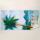 Toalha Verde Azul de Praia com a cor azul-d'água, arte verde de praia e flamingos cor-de-rosa.Use personalizar esta opção modelo para alterar o texto | Use a opção personalizar mais para alterar o estilo, o tamanho e a cor do texto, se necessário.