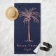 Esta divertida toalha de praia de palmeira tropical com as palavras "Tribo de Noiva" em ouro rosa sobre fundo azul marinho é o presente perfeito para um destino de praia tropical ou casamento ao ar livre! Personalize-o com o nome da sua dama de honra.