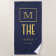 Toalha De Praia Marinho e Monograma Personalizado Dourado e Nome B