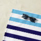 Toalha de praia com faixa de cabana com padrão listrado azul, vermelho e branco. Personalize com seu nome.