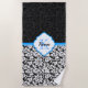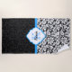Cor damasco floral, preto e branco, moderna e simples, e estrutura azul e faixa. Monograma opcional