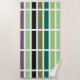 Padrão geométrico linear, retangular, listrado de matizes pretas, roxas e verdes.