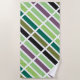 Padrão geométrico linear, retangular, listrado de matizes pretas, roxas e verdes.
