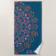 Faça uma declaração na praia ou na piscina com esta toalha personalizada com padrão de mandala, apresentando detalhes florais e geométricos intricados em rosa vibrante e dourado contra um fundo azul profundo; personalizável com um nome, esta toalha elegante e funcional é perfeita para férias de verão, dias de spa ou presente para alguém que ama designs ousados e artísticos com um toque de elegância.