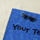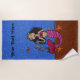 Esta toalha de praia personalizada é uma sereia com cabelo preto e uma cauda cor-de-rosa segurando a cabeça de um cavalo prateado e azul no oceano azul com um peixe nadando acima dela e dois estrelas de laranja na areia abaixo dela. Personalize seu texto com o modelo.