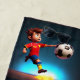 Foto em um design animado 3D é um jogador de futebol com uma bola de futebol com fogo embaixo dele