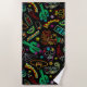 Arte de Linha Alegre e Colorida México Padrão Fiesta, composto por Elementos Típicos como crânios de açúcar, maracas, inca guerreiro, aztec guerreiro, pimenta-do-pirilo, cacto, pirâmide, limão, tequila, sombrero, tacos, camaleão, e alguns elementos florais étnicos e decorativos. Arte vetorial original Copyright BluedarkArt.