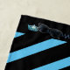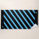 Esta toalha de praia é mostrada num fundo negro com riscas coloridas azul-turquesa ousadas e com um impressão de um brilhante desfile de turquesas em pontas opostas. Texto para personalizar com seu nome, título de concurso ou frase favorita. Personalizar este item.
