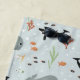 Esta design de toalha de praia, galinha e baleia, apresenta uma baleia, peixe, espada, orca e algas, com espaço para você adicionar o nome de sua criança em uma bela tipografia. O padrão perfeito para os amantes do oceano, que é neutro em termos de gênero!
