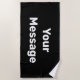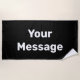Você pode criar sua própria mensagem em texto branco nesta toalha de praia preta.
