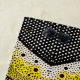 Clusters of black and white micro‑dots flow into expressive, organic shapes, enriched with warm yellow accents and delicate pink points for a dynamic, gallery‑inspired look.