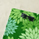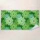 Toalha de praia numa tomada moderna de um tradicional impressão de quimono floral japonês - flores estilizadas em tons de verde limão e aqua num fundo verde esmeraldo profundo