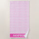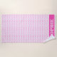 Este doce e moderno círculo geométrico, rosa e branco, toalha para crianças é perfeito para a praia, piscina de natação, ou banheiro infantil. Esta toalha rosa e branca de praia para crianças apresenta um padrão circular rosa e branco com um lugar no fundo para personalizar com o nome de sua escolha.