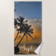 Você está procurando uma toalha de praia personalizada? Esta vista de pôr do sol, que inclui uma palmeira e um design do oceano, vem com um elemento de nome personalizado, você pode editá-lo e torná-lo seu próprio em breve. Isso faz uma ideia perfeita de presente para a família e os amigos!
