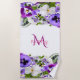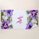Duas elegantes bordas de flores violetas, lavandas, roxas e brancas, pansias num pano de fundo transparente. Modelos para uma letra e um nome monográficos, letras cor-de-rosa e púrpura.
