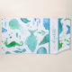 Sob o mar, tema oceânico. Um fundo branco-quic com um padrão aquoso de vida marinha, peixes, golfinhos, uma baleia, tartaruga, cavalo-marinho, água-viva em verde, azul e lacrimogêneo. Perfeito para uma casa de praia ou uma casa de verão. Personalize e adicione seu nome. O nome é escrito com um roteiro escrito com a mão verde azul com traços. Para manter as hastes, exclua apenas o nome da amostra, deixe os espaços ou emoji na frente e depois do nome.