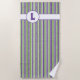 Toalha De Praia Monograma com Listras Roxas, Verdes e Brancas
