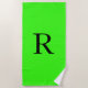 Toalha De Praia Monograma Cor Sólida Verde Neon Inicial Legal