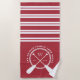 Prepare toalha de praia em vermelho e branco para sua casa no lago. Adicione seu nome de família, inicial, e o ano estabelecido a um monograma náutico de remos cruzados sobre um círculo de corda. A toalha da praia também apresenta listras vermelhas e brancas.