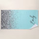 Toalha De Praia Monograma de Brilho Azul Água Turquesa Prata
