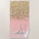 Toalha De Praia Monograma de Gradiente Rosa Rosa Confetti Dourado