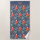 Toalha De Praia Monograma de Padrão Tropical de Terra Azul