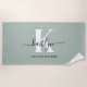 Toalha De Praia Monograma de Script Verde do Moderno Sage