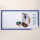 Esta toalha de praia monogramada pré-filmada apresenta um pato mallard em tons clássicos de verde, azul e marrom. Personalize o monograma com sua escolha de iniciais em verde correspondente. Excelente para favoritos para festas de piscina!
