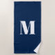 Monograma marinho inicial, azul e branco, moderno Beach Towel