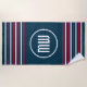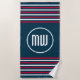 Toalha De Praia Monograma Náutico de Stripe Branca Azul Vermelha