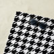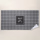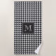Um teste padrão preto e branco clássico do houndstooth acentua a inicial do monograma nesta toalha. Faz uma toalha à moda para a praia ou a piscina.