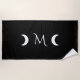 Luas minimalistas em crescente complementam seu monograma ou iniciais nesta toalha de praia típica branca e preta. ♡ Idyllfire
